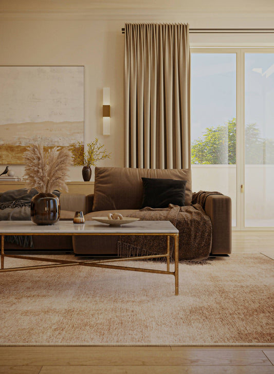 Minimalist sandy-textured rug. Expertly designed for those seeking a subtle yet impactful addition to their modern, minimalist decor.