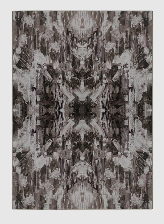 Monochrome abstract rug with bold shapes and brush strokes. Perfectly crafted for contemporary interiors seeking a modern artistic touch.