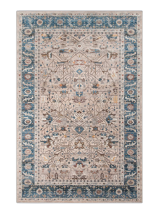 Inspired by delicate watercolor artistry, our printed rug showcases a harmonious continuous pattern influenced by floral motifs, adding a touch of elegance to any decor.