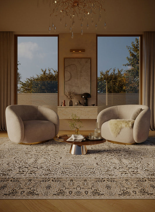 Infuse your room with a rug that evokes the timeless beauty of gemstones and the lavish charm of luxury, inspired by the radiant sparkle of Alexandrite and Citrine.