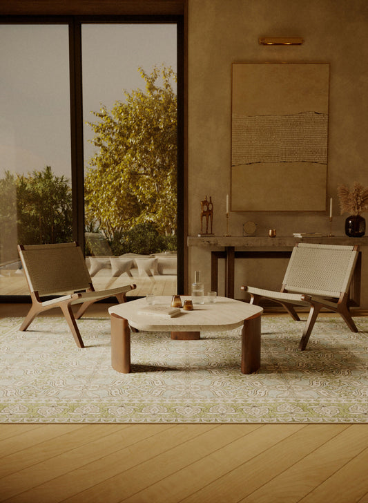 Transport yourself to the enchanting landscapes of Morocco with a rug that captures the vibrant hues and exotic charm of Mint Trees swaying in the desert breeze.