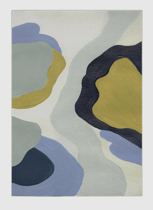 Provence blue, grey, and mocha watercolor brush stroke rug. A grand-scale design perfectly suited for modern interiors aiming for a refined color palette.