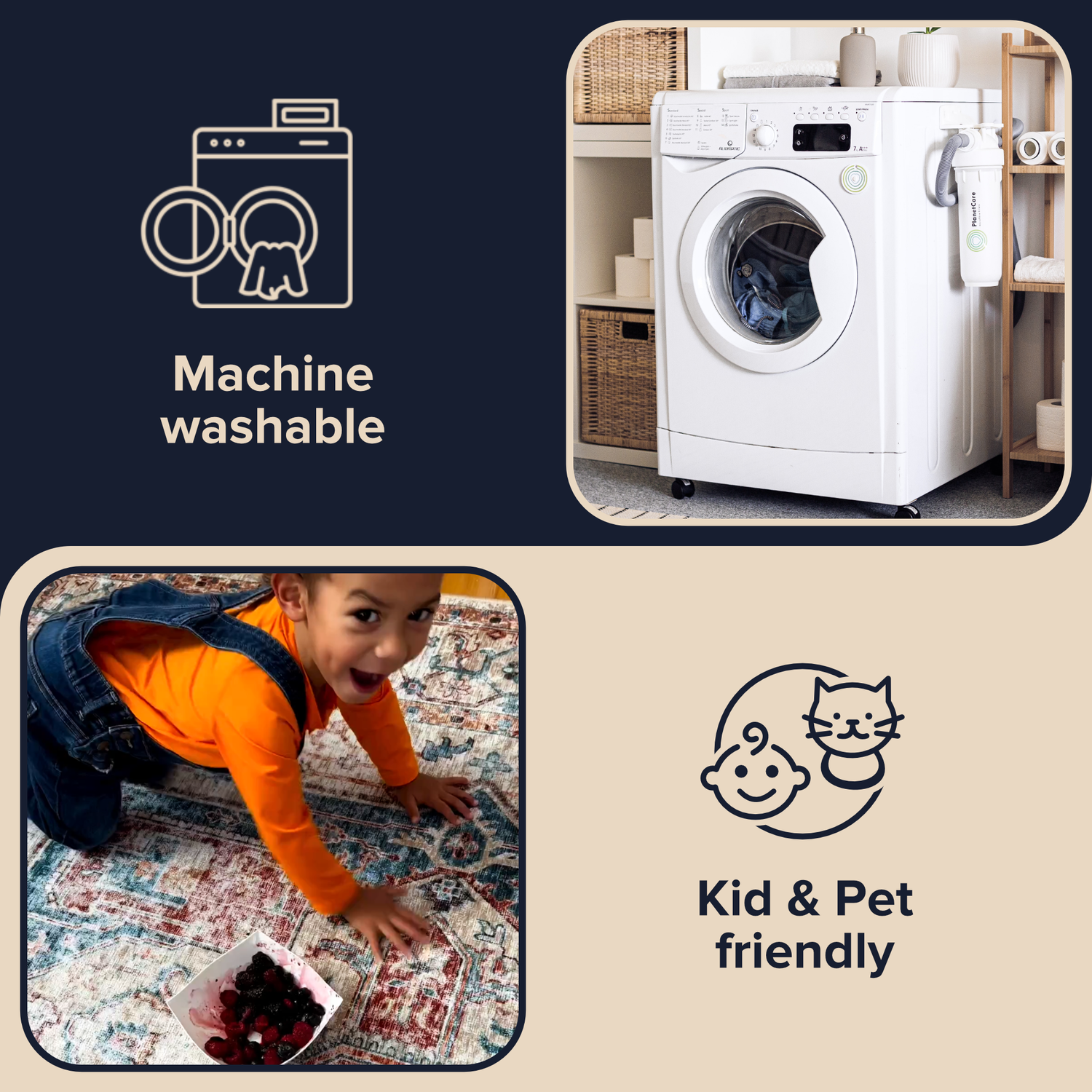 Washable Rug: Machine Washable - Fits in a regular-size washing machine.